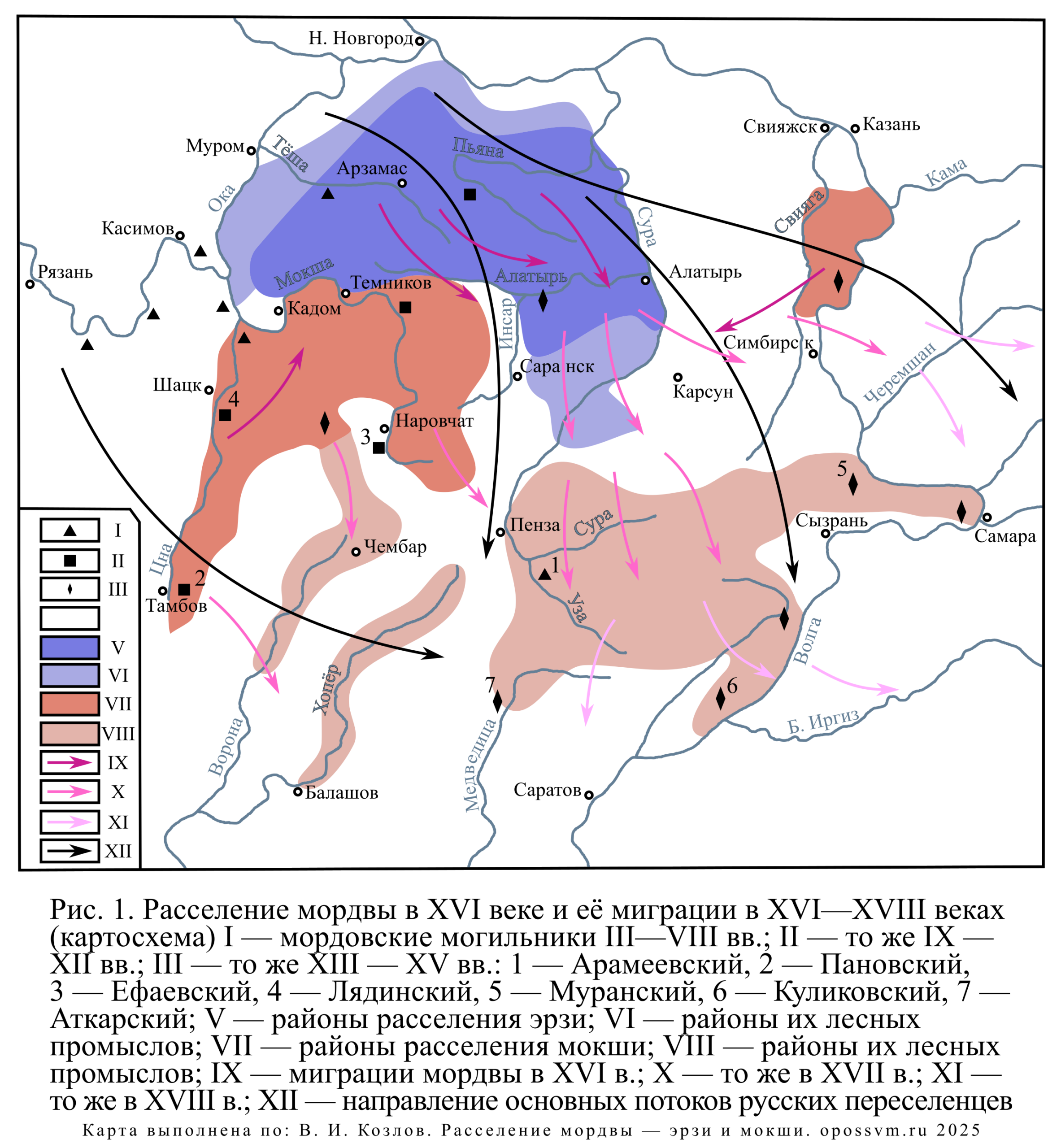 Расселение мордвы в XVI веке и её миграции в XVI–XVIII веках